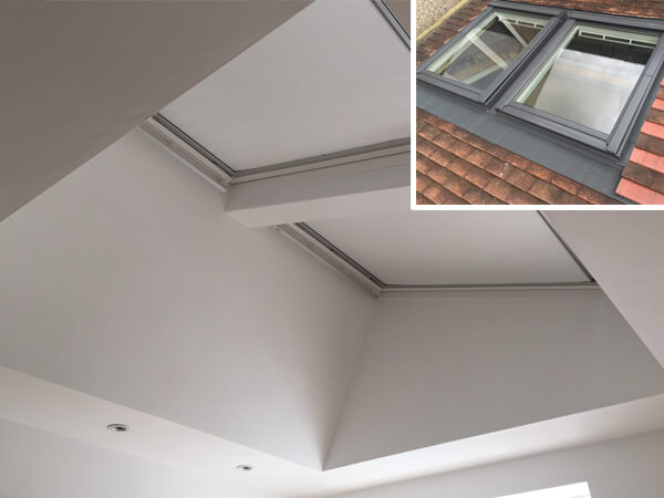 As we Registered Velux Installers we was approached by this customer advice on how to get more light into their children's playroom. Above the room was a pitched roof so we suggested fitting Velux roof windows. After taking measurements and discussing the options it was decided that two Velux windows along with a vaulted lightwell was the best option to gain the most daylight. From start to finish the work took only three days and the end result was amazing. the customers comments were: It's incredible how much more light we have and how the two new windows have transformed the feel of the room.