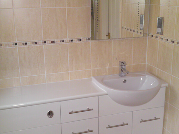 This was a straight forward project but still required an eye for detail. We was asked to work along with the customers plumber and tiler to modernise their bathroom. Our main work was finishing's like bespoke hand made cabinets and work surface and fitting new door and architraves.