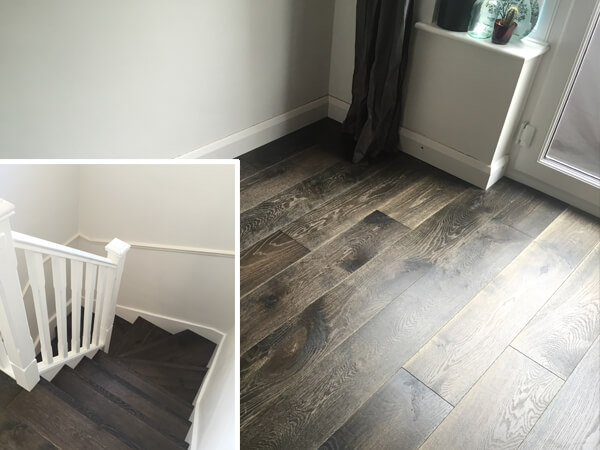 This client contacted us through Checkatrade and asked if we could quote to remove existing floor covering and lay new flooring to the downstairs, the main staircase and the upstairs landing. On our first visit to quote the customer asked for advice on what was the best type of flooring to go for and the best method for finishing the flooring on the staircase. After this visit, based on our discussions the customer decided to go for an engineered board with a solid Oak finish. The end result was an elegant yet modern floor which flowed from downstairs, up the staircase and finished neatly against the doorways on the upstairs landing.